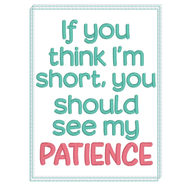 Hey there! Looking for a unique and charming piece of home decor? Well, look no further because our "Short Patience" hooped wall art is just what you need! This delightful 5x7 embroidery design on fabric is presented in an 8-inch wooden embroidery hoop, adding a touch of rustic charm to any space.
